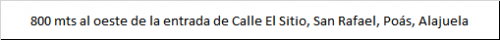 800 mts al oeste de la entrada de Calle El Sitio, San Rafael, Poás, Alajuela